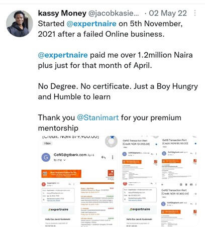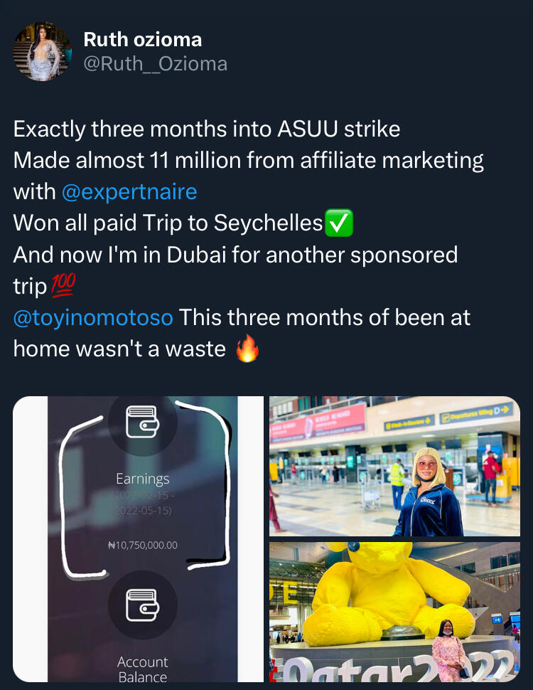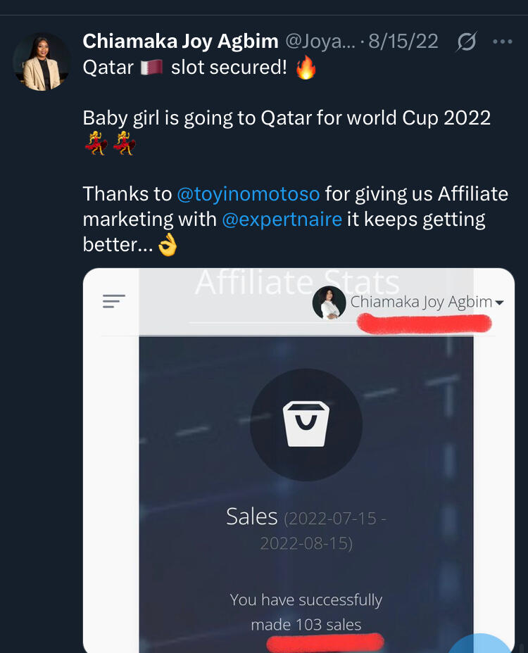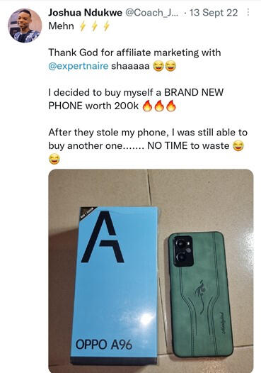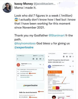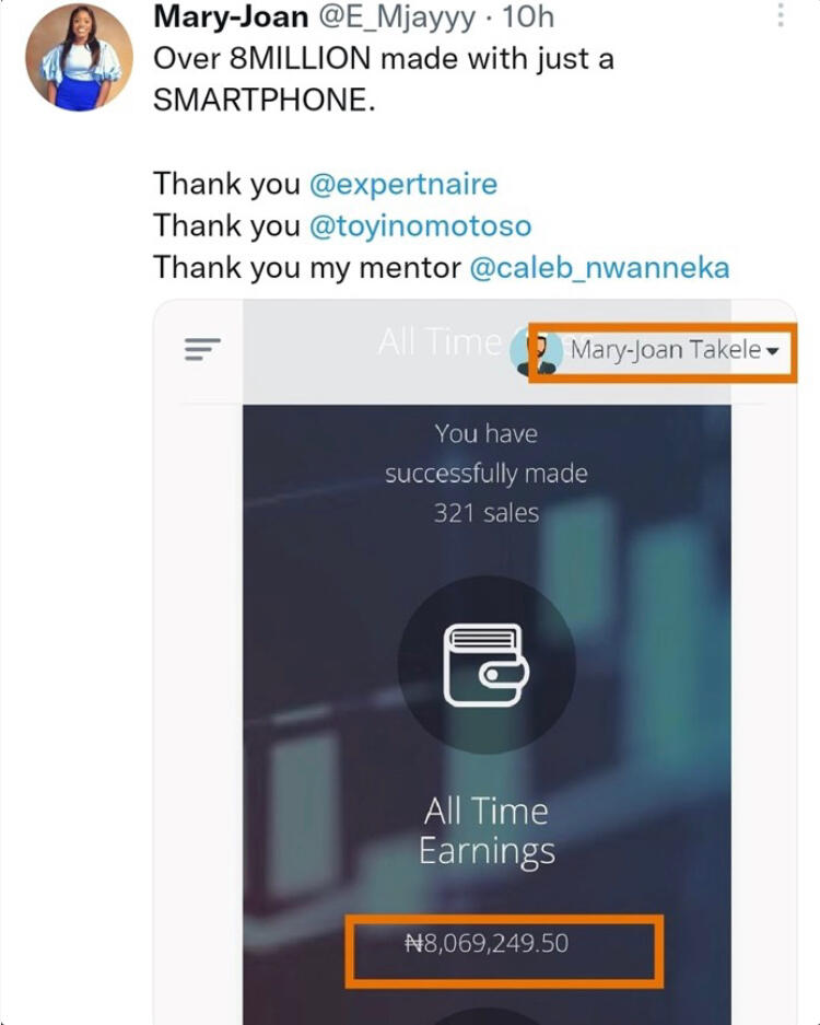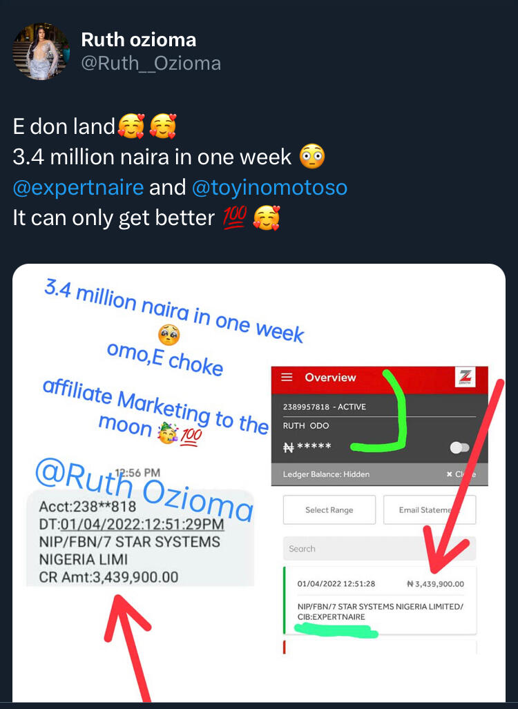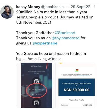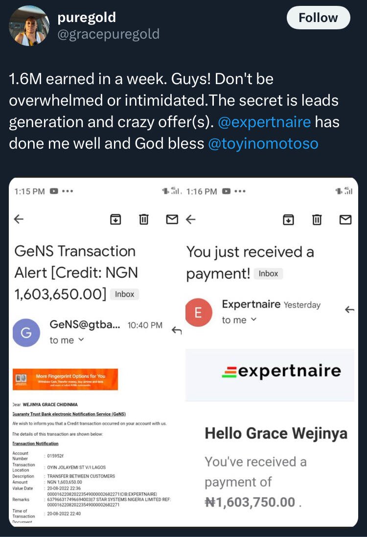 There's also Elohor Egwerehe who made 300k in 2 weeks of being an affiliate on Expertnaire.