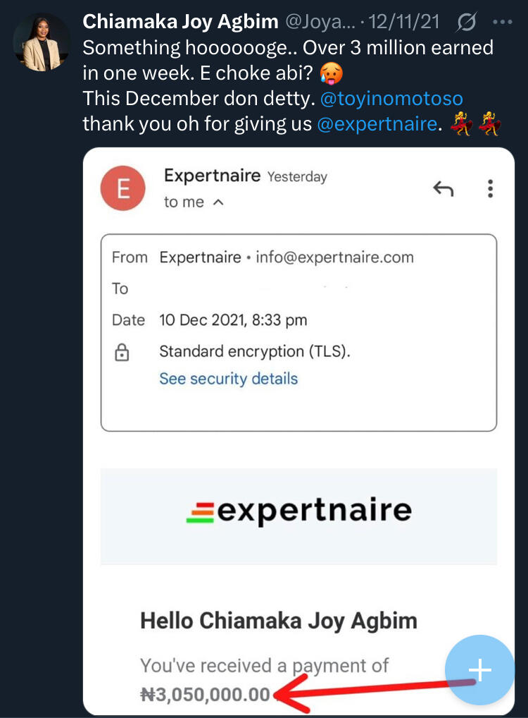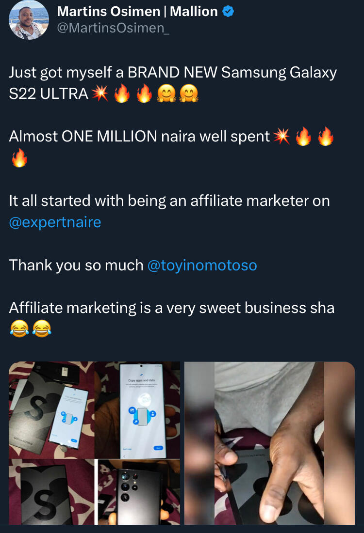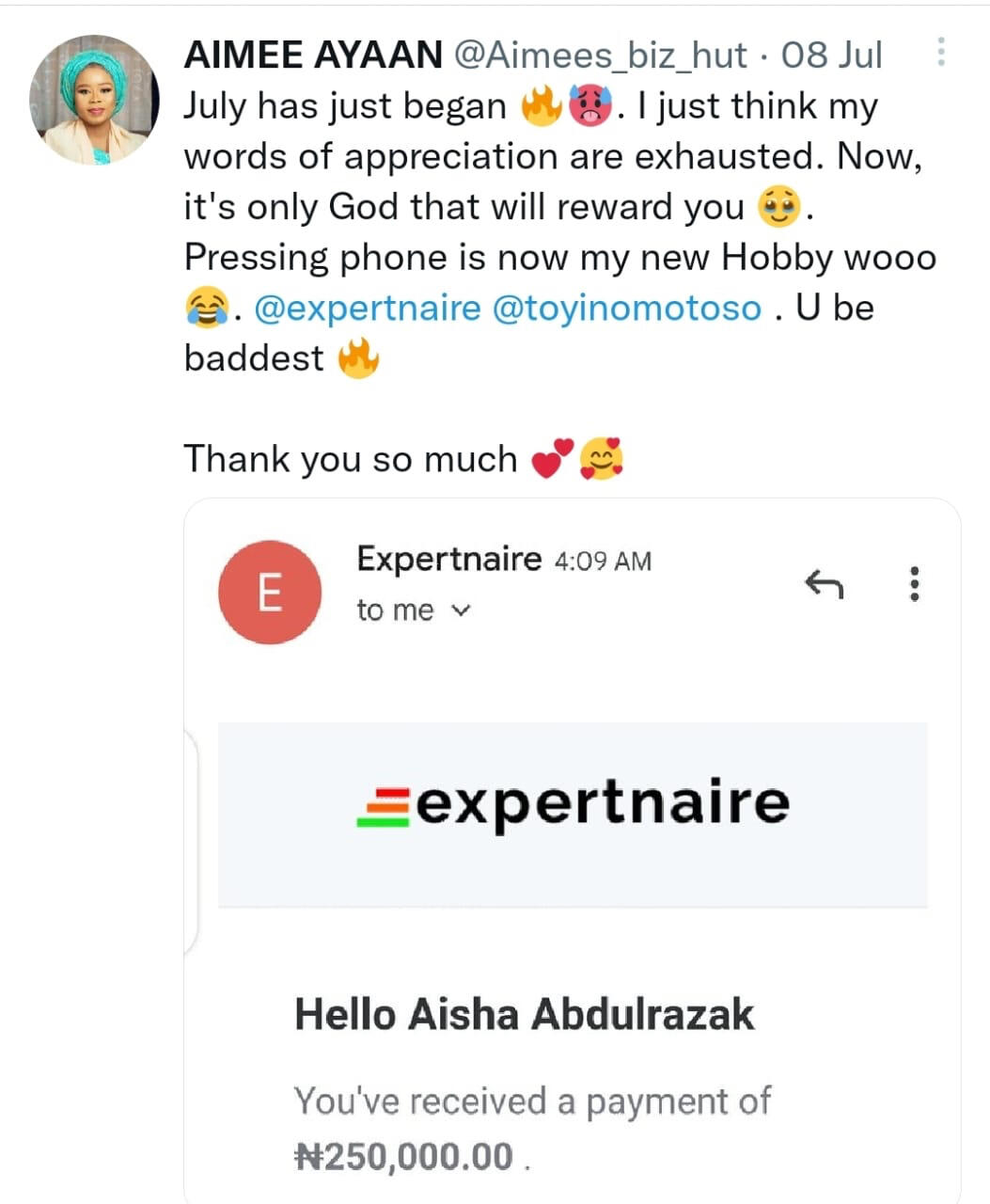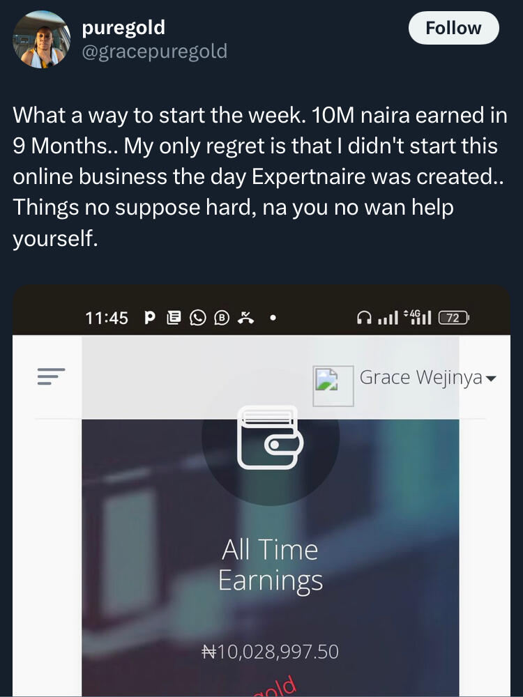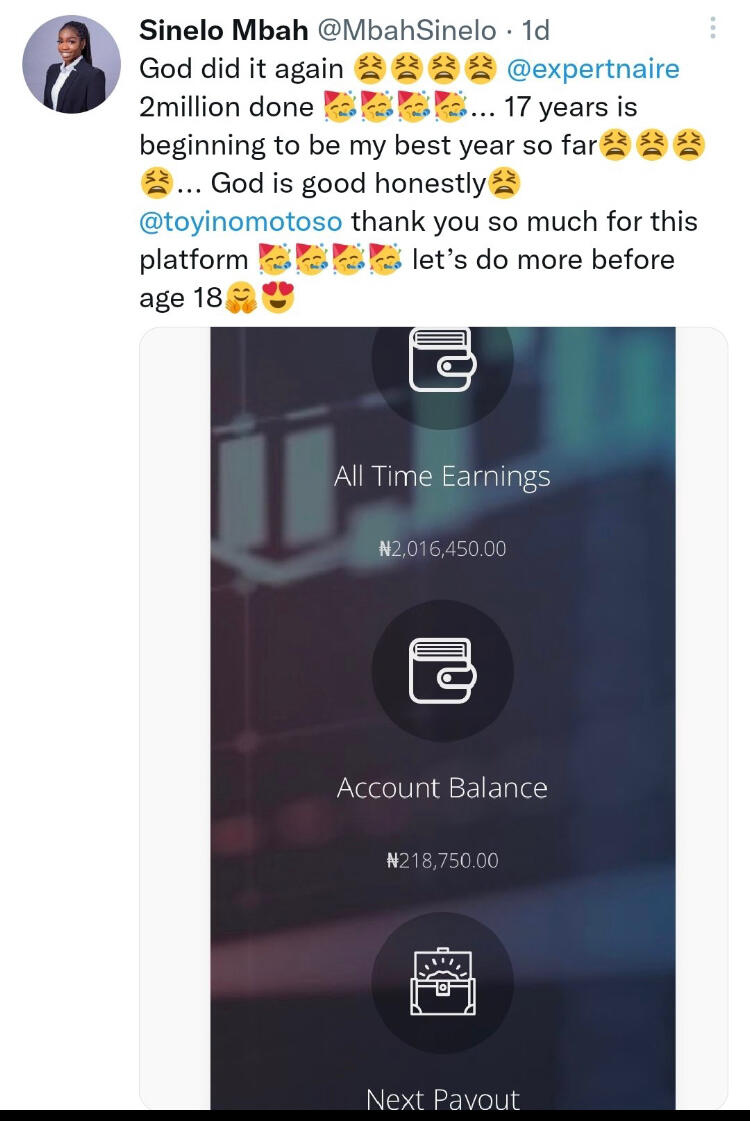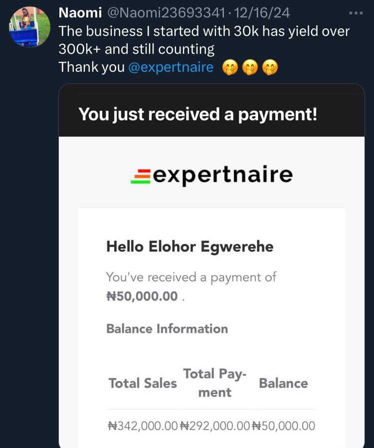 There's also Elohor Egwerehe who made 300k in 2 weeks of being an affiliate on Expertnaire.