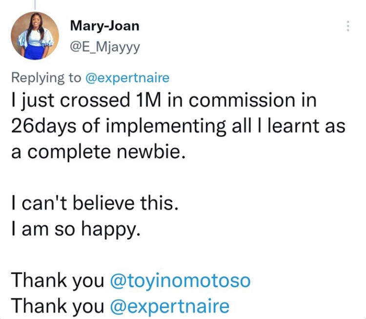 You could even go on to become a top affiliate or even a super affiliate, earning over 10 million naira in one year, just as we've seen with so many others on Expertnaire.
