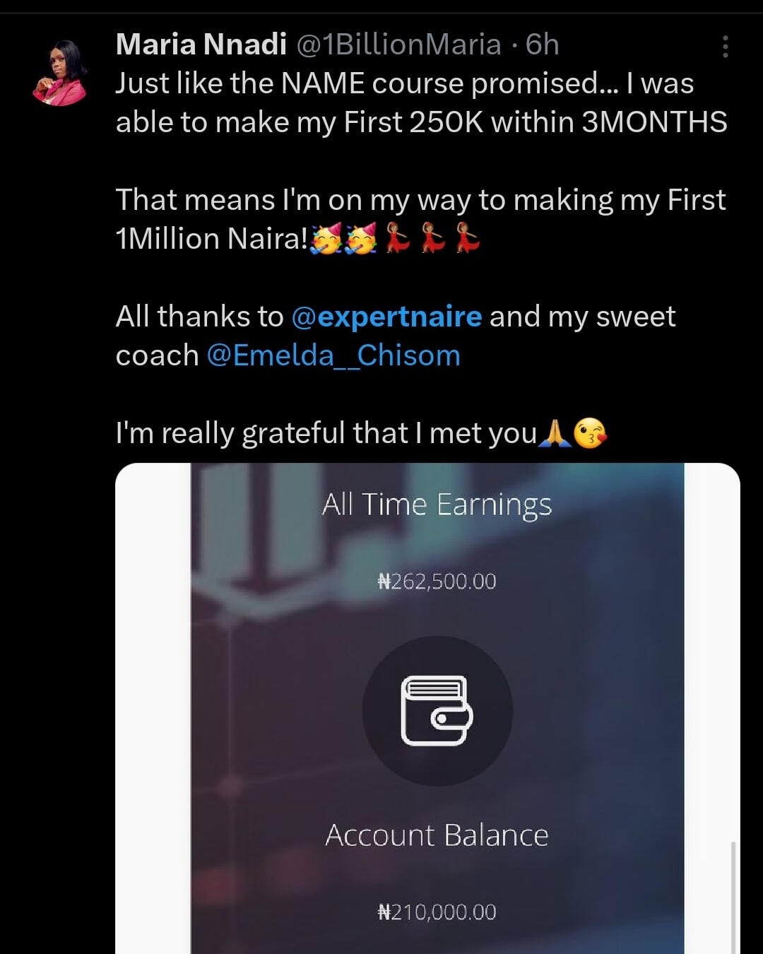 There's also her friend Maria Nnadi. Who cashed out ₦250,000 in Less than 3 Months, by following these same three simple steps.