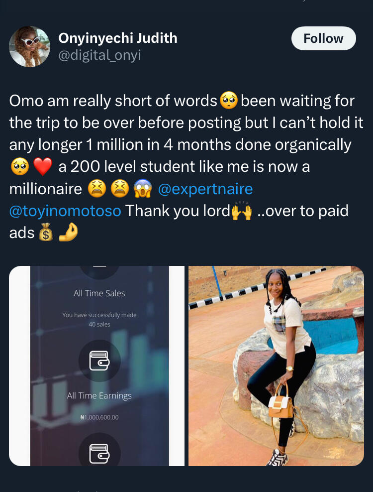 Onyinyechi, a 200-level student, made N1 million in 4 months.