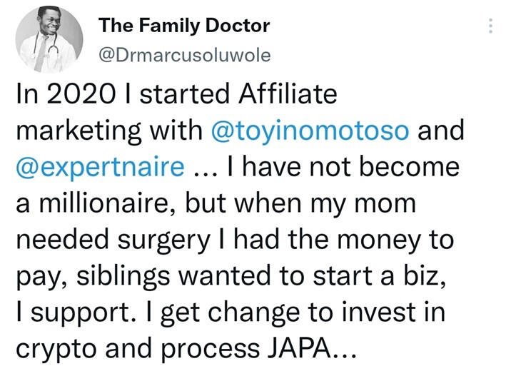 Like Marcus Oluwole who was able to pay for his mother's surgery from the money he made through affiliate marketing.
