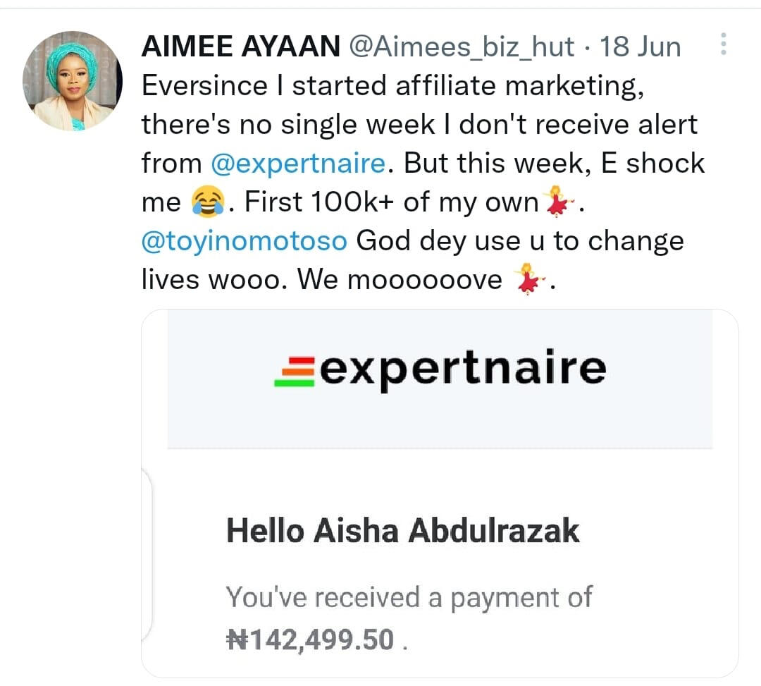 And then went on to making at least ₦300,000/month regularly as an affiliate on Expertnaire.