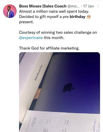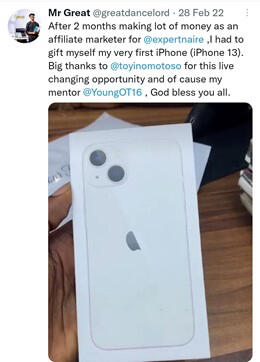 Or like James, Shola and Moses who were able to buy laptops for themselves from their Expertnaire Affiliate commissions.