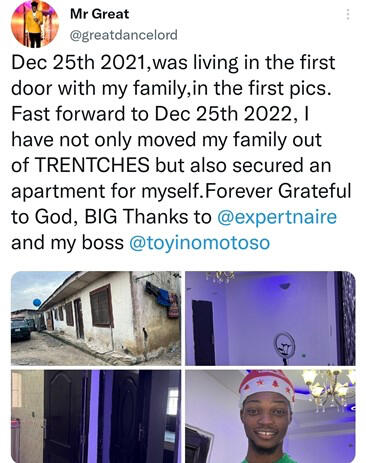 He was also able to move his family out of the trenches while also moving into a new and better apartment himself.
